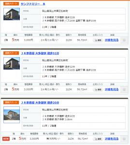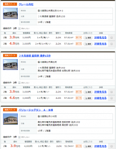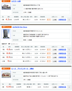 賃貸物件検索サイト、ホームズで各県の物件を同条件で安い順に見てみただけです。